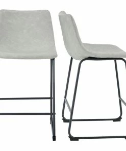Hot Sale 🎉 Walker Edison 24″ Faux Leather Counter Stool, Set Of 2, Gray ⌛