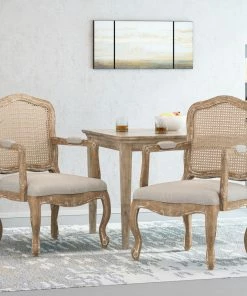 Brand new 😉 GDFStudio Biorn French Country Upholstered Dining Armchair, Beige + Natural, Set Of 2 🔥