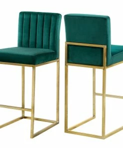 Buy ๐ Meridian Furniture Giselle Velvet Counter Stool, Green, Gold Base ๐งจ
