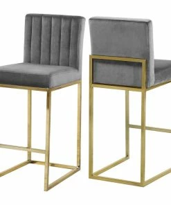 Best Sale ๐งจ Meridian Furniture Giselle Velvet Counter Stool, Gray, Gold Base ๐