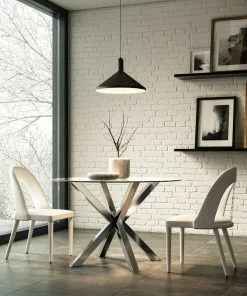 New ๐ Lumisource Folia Dining Table With Walnut And Clear Glass Finish DT-FOLIA WL+CL ๐