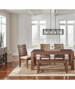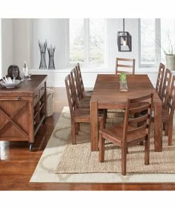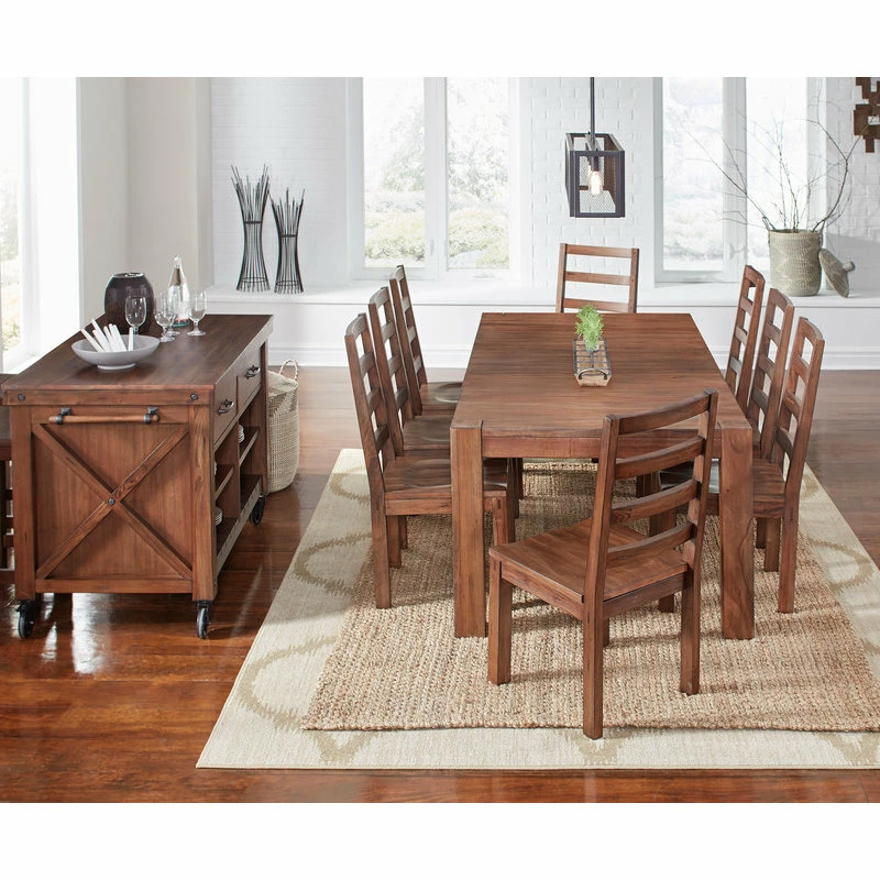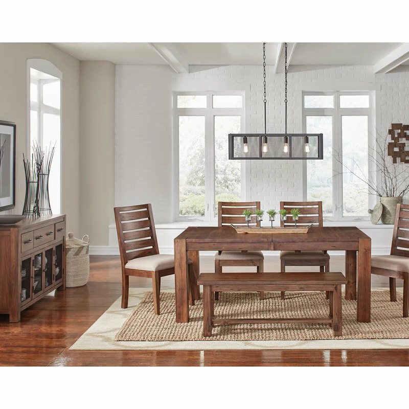 The Anacortes Dining Collection is crafted from plantation grown Solid Mahogany. This hardwood is the perfect choice for the vintage industrial motif of this collection due to its durability and exotic look. The 9-Step Salvage Mahogany finish lends a gingered patina that resembles reclaimed wood, while the wire brushing offers a soft hand that imparts an aged quality. Generous hand-applied distressing tecniques, metal accents, and bronze finished hardware complete the look. This collection offers three different dining table options: an Oval Pedestal Table that converts to a 46″ Round Table, a 90″ Leg Table, and a 105″ Trestle Table. There are muliple seating options and a beautiful Kitchen Island with Casters and 64″ Server to complete the collection.
