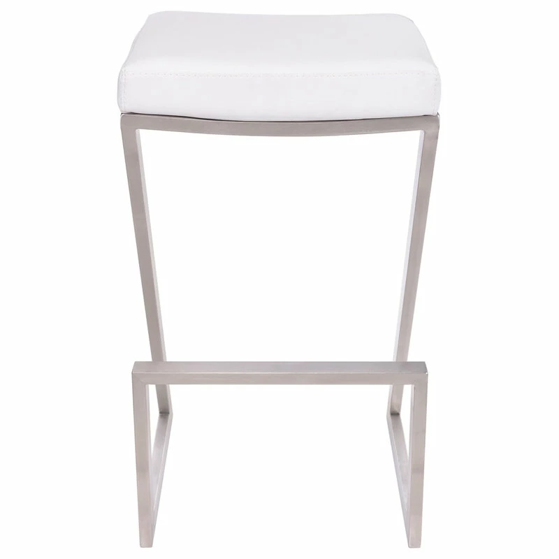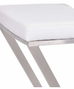 The Armen Living Atlantis 26″ Counter Height Backless White Faux Leather and Brushed Stainless Steel Bar Stool is the perfect addition to any home! The unique Z-shaped metal base is not only a stylish design feature but also provides optimal support to the upholstered seat. This kitchen counter stool easily tucks away under your peninsula, kitchen island, or home bar and effortlessly incorporates into any house regardless of style theme. The soft faux leather upholstery is wrapped around a high-density foam cushion that keeps you or your guests comfortably seated. The armless design also for easy movement and can be moved as close as needed when using with a working surface. The Atlantis Backless Faux Leather and Brushed Stainless Steel bar stool is available with your choice of black, grey, or white faux leather upholstery and features a sturdy brushed stainless-steel base.