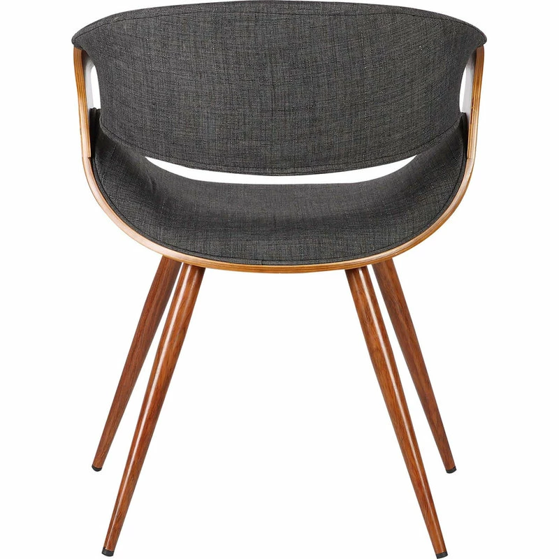 The Armen Living Butterfly modern side chair is a wonderful addition to the contemporary kitchen or living room setting. This mid-century style dining chair features a comfortable curved back upholstered in beautiful fabric. The arms of the Butterfly are curved extensions of the back, making this chair a truly unique and stylish piece. To ensure both sturdiness and natural beauty, the Butterfly is fitted with walnut finished metal legs. This piece is unique and catching that you can play up or down in any room in your home. It is the perfect size for small spaces such as dorm rooms or apartment or it can be used to entertain large gathering in style. The medium high cushion open back is ideal for posture alignment and an unmatched support for days on end. We mimic our butterfly collection by drawing inspiring on how butterflies move across the open field, fluidly and delicately just like the design and look of this collection. This is item is reminiscent of how alluring and delicately a butterfly moves. The foundation of the product is supported by solid walnut wood for a sturdy and stylish aesthetic without comprising practicality and functionality of this item. This item is a versatile piece that can be ideal for dining, kitchen or even home office desk chairs. This product ships in one box with easy and quick set up. We stand by the quality, the craftsmanship and the integrity of our product by offer 1-year warranty for all our products. The style and sophistication of this contemporary piece is sure to impress and comfort. The Butterfly is available in blue, charcoal and green. Product Dimensions: 21″W x 22″D x 29″H SH: 18″