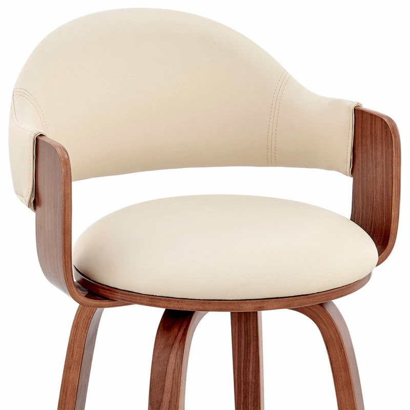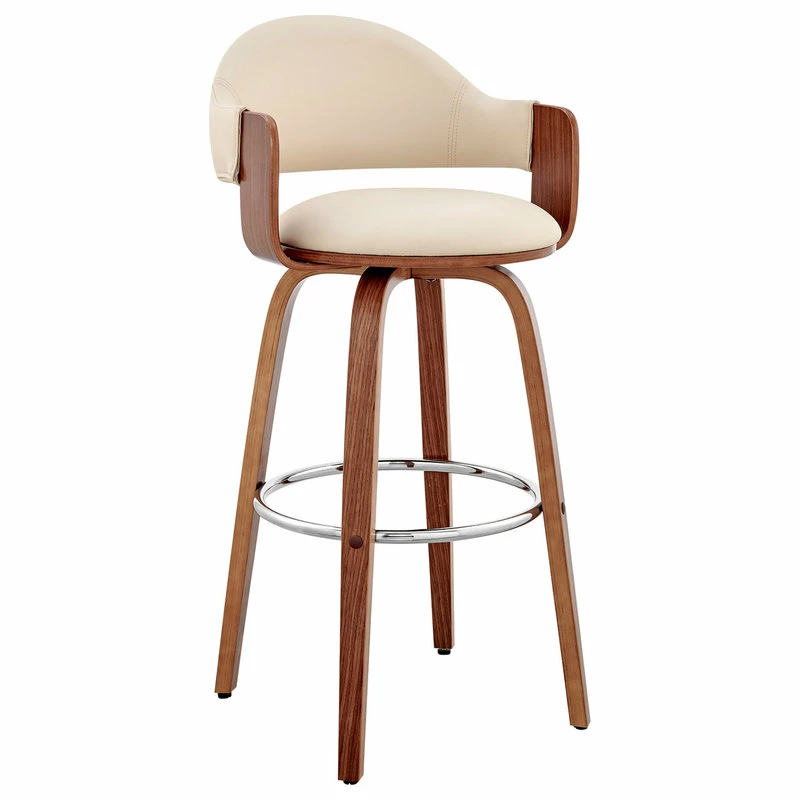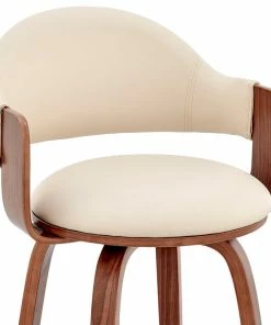 The Daxton Faux Leather and Wood Bar Stool will complement the existing decor in your home and help elevate it to the next level. The Daxton features a 360-degree swivel function that allows you to keep the conversation going in every direction. The Daxton is also crafted with a ring footrest – meaning you can relax your feet regardless of the direction you decide to turn! The plush seat cushion is padded with high-density foam that will provide you with immense comfort. The Daxton is available in your color choice of Gray, cream, or brown faux leather with walnut wood or Gray faux leather with black wood.