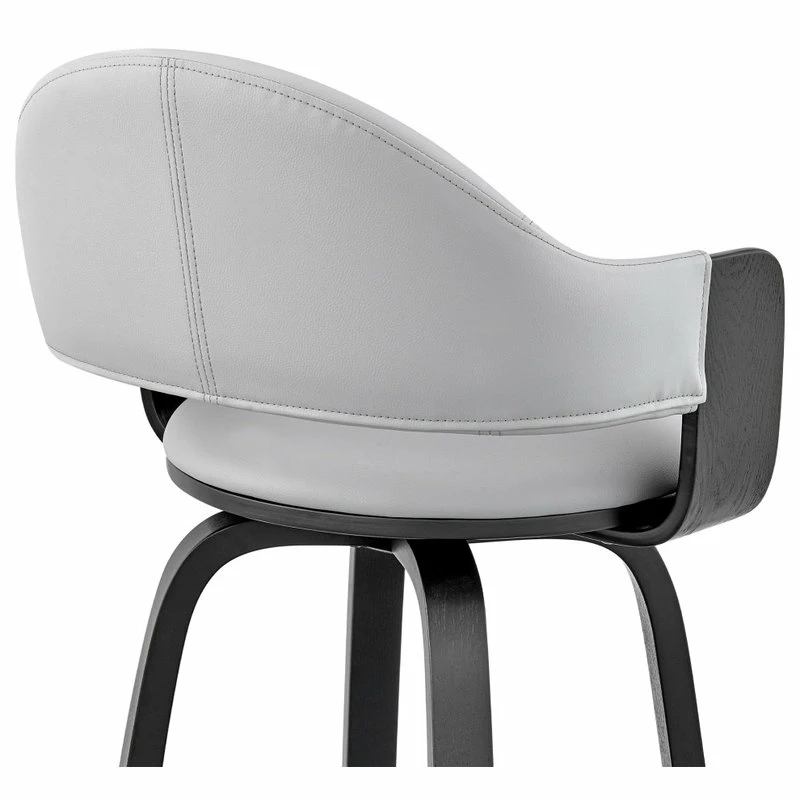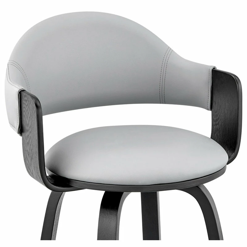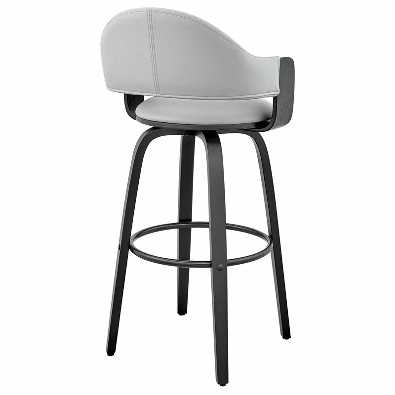 The Daxton Faux Leather and Wood Bar Stool will complement the existing decor in your home and help elevate it to the next level. The Daxton features a 360-degree swivel function that allows you to keep the conversation going in every direction. The Daxton is also crafted with a ring footrest – meaning you can relax your feet regardless of the direction you decide to turn! The plush seat cushion is padded with high-density foam that will provide you with immense comfort. The Daxton is available in your color choice of Gray, cream, or brown faux leather with walnut wood or Gray faux leather with black wood.