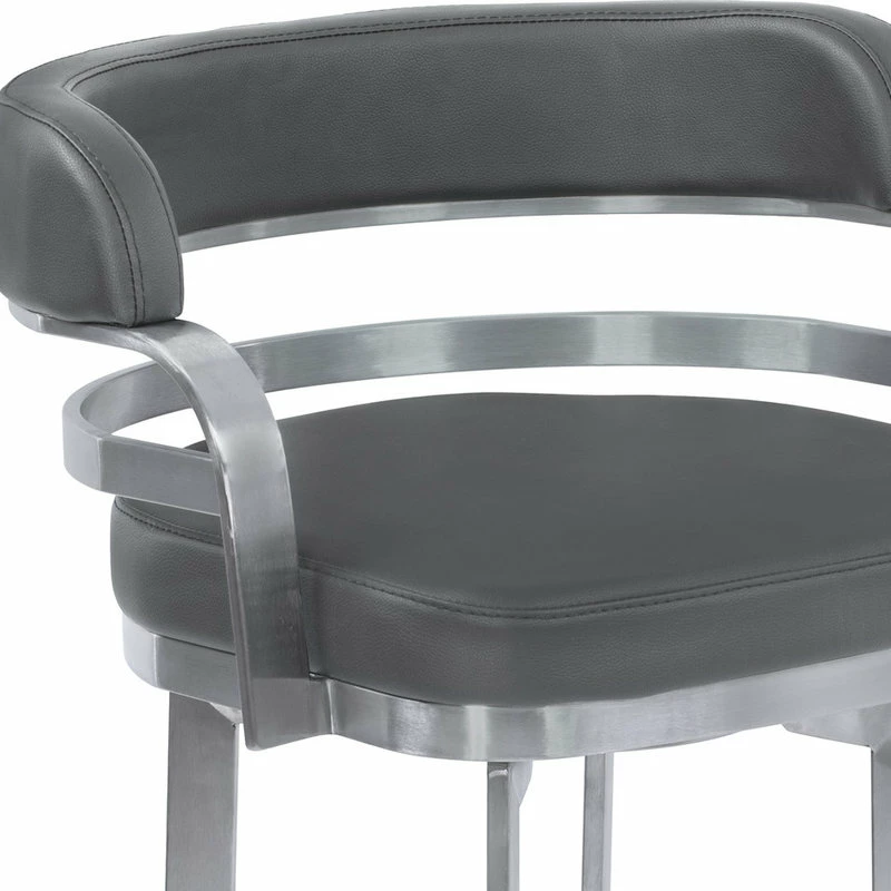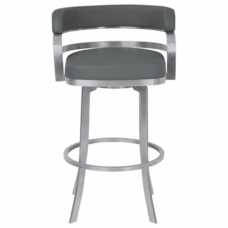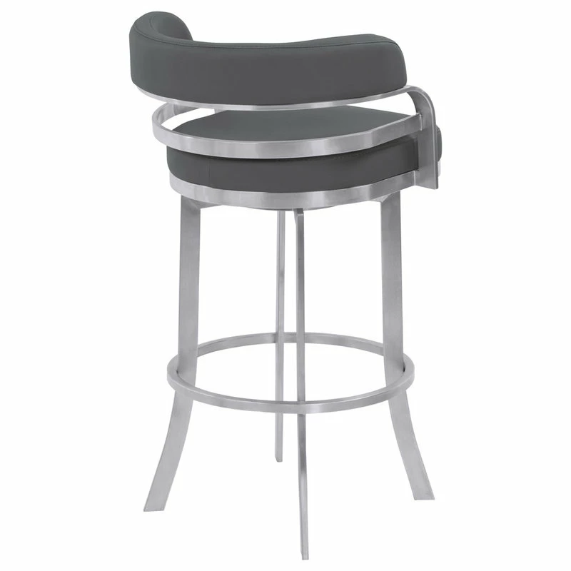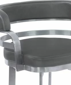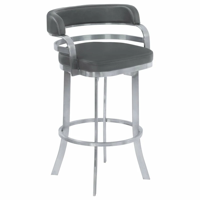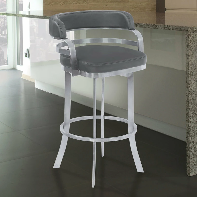 The Armen Living Prinz modern stationary barstool is an elegant piece of furniture ideal for the contemporary home. The sturdy brushed stainless-steel frame and plush faux leather upholstery provide the assurance of durability while detracting nothing from the comfort of this chic luxury item. Stylish and practical, the Prinz’s style is matched brilliantly by its versatility, making it a perfect fit in just about any room of the house. This piece provides both a versatile style and comfort with a modern design that can easily be integrated into your home’s current décor. While appearing stationary, the Prinz features a 360-degree swivel feature for maximum mobility. The plush padded seat with high-density foam will provide you with all-day comfort. The curved wood medium-high back is ideal for posture alignment and an unmatched support for days on end. The foundation of the product is supported by wood and chrome footrest for a chic and stylish aesthetic without comprising practicality and functionality of this item. This product ships in one box with an easy and quick set up. We stand by the quality, the craftsmanship, and the integrity of our product by offering a 1-year for all our products. We want our customers to enjoy our product and we will always be there to help with our top-notch customer service support. Excellent choice for a Modern, Contemporary and traditional dining and Kitchen setting. The Prinz comes in two sleek colors, black and gray, and is available in 26-inch counter and 30-inch bar height. Product Dimensions: 22″W x 22″D x 34″H SH: 26″