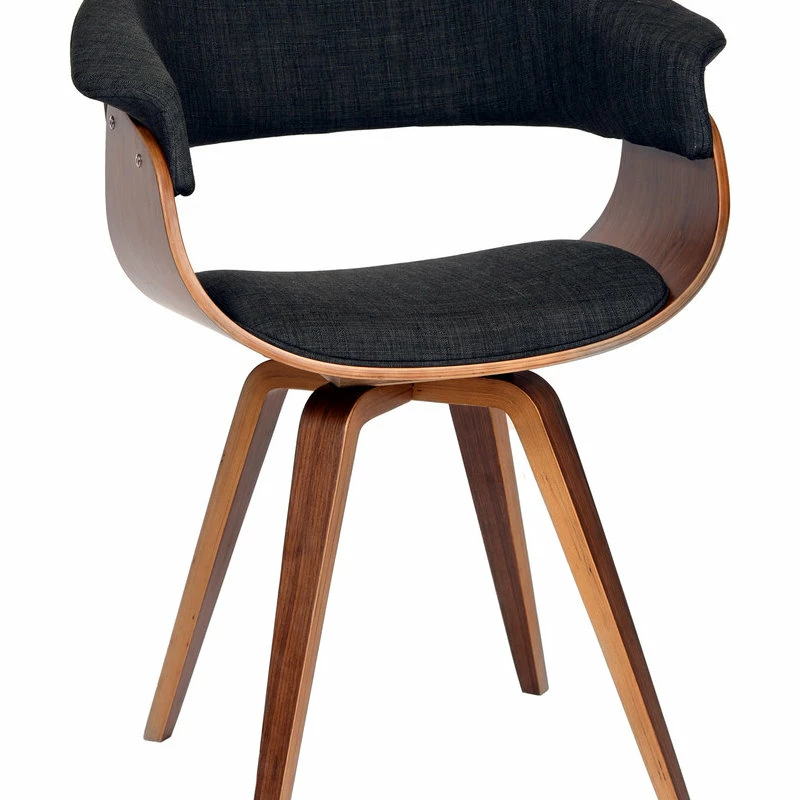 Mid-century modern inspiration and quality materials come together harmoniously with the Summer Dining Room Chair in Fabric and Wood from Armen Living. The Summer dining chairs are available in multiple color finishes and add a touch of style to any home. Use them traditionally as dining room chairs, add to the living or bedroom as an accent chair, or utilize in your home office or gaming room. The modern dining chairs are constructed from poplar wood, which has relatively high density, compressive strength, and bending strength compared to other woods. The polyester upholstery is resistant to stains, mildew, abrasion, and sunlight. The seat height of the Summer dining chairs is 19″ and it easily pairs with a dining table between 28″-30″ high. Mid-Century Modern design style was developed from the organic architecture principles of Frank Lloyd Wright, combined with elements drawn from the Bauhaus movement – the center of modernism. Characterized by clean simplicity, Mid-Century Modern style is organic in its use of wood and other natural materials. Enjoy smooth, ergonomic comfort with the Summer dining chair’s curved seat and backrest that hugs your back, melting away the cares of the outside world as you settle in for a coffee or extended meal. The Summer dining room chairs are available in your choice of a black wood finish with charcoal or grey upholstery, or a walnut wood finish with green, charcoal, or blue upholstery.