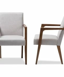 Best Pirce โ Baxton Studio Andrea Mid-Century Modern Grayish Beige Upholstered Wooden Armchair, Set Of 2 ๐งจ