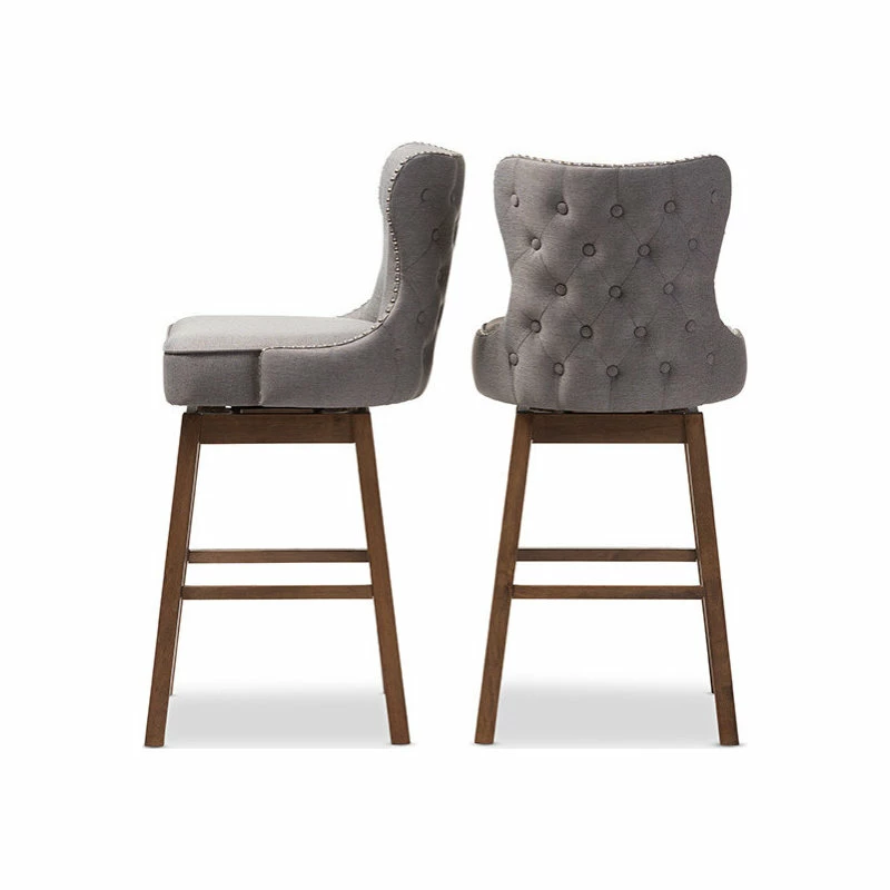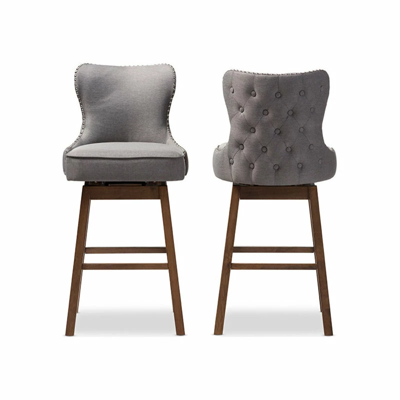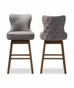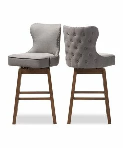 Cheap 🔥 Baxton Studio Gradisca Brown Wood And Tufted Swivel Barstool, Set Of 2, Gray 🛒