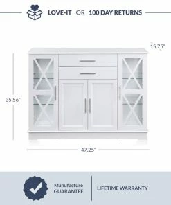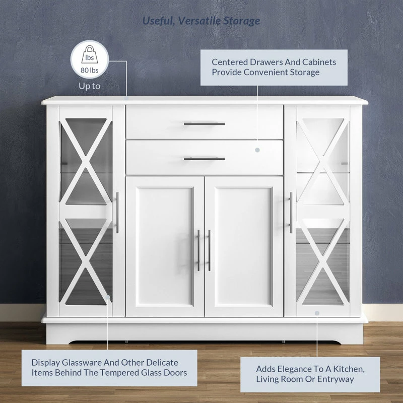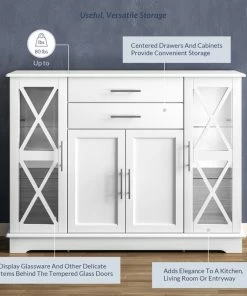 - This storage cabinet is made of superior MDF material and tempered glass, which ensures a strong construction.