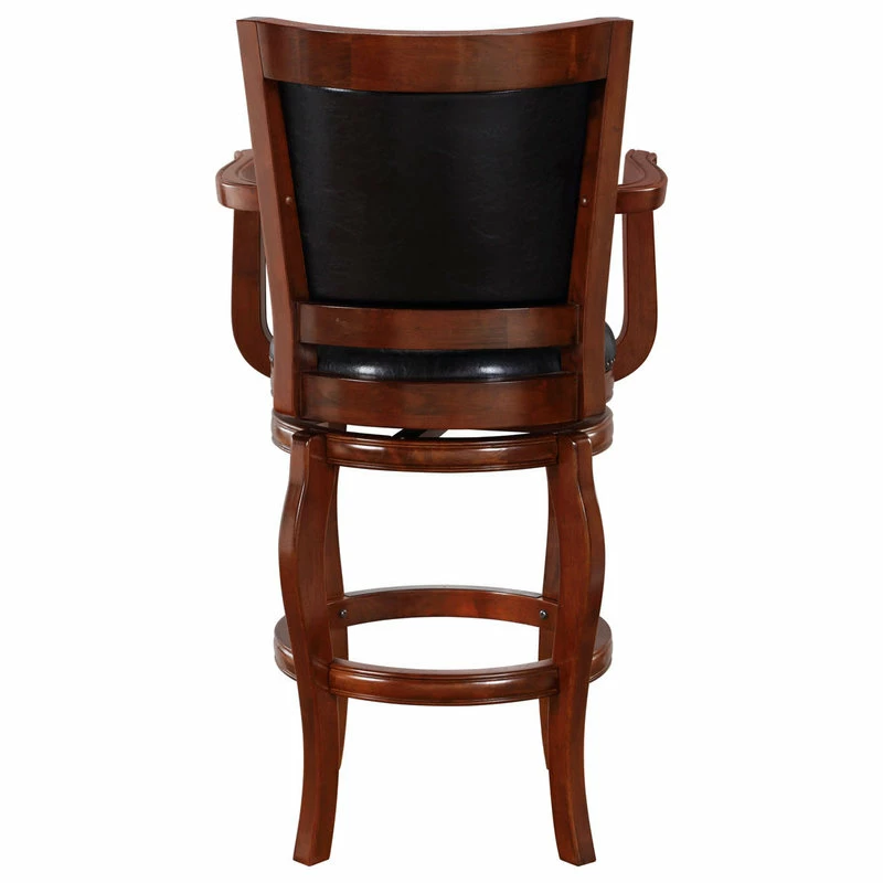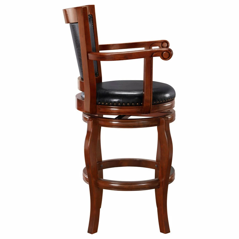 The Jones Memory Swivel Stool from Boraam Industries, Inc. boasts a solid hardwood footrest, fitted with a durable metal kick-plate to protect if from scuffs and scratches. Boasting a steel memory return-swivel mechanism, this piece has been designed with your comfort in mind, featuring a high-density foam seat and backrest cushion, upholstered in shiny cherry bonded leather and adorned with 17th Century-inspired genuine brass nailhead detailing. Exuding a warm, luxurious feel, thanks to its rich colors and sumptuous textures, this swivel stool from Boraam Industries, Inc. makes a sophisticated addition to any interior space.