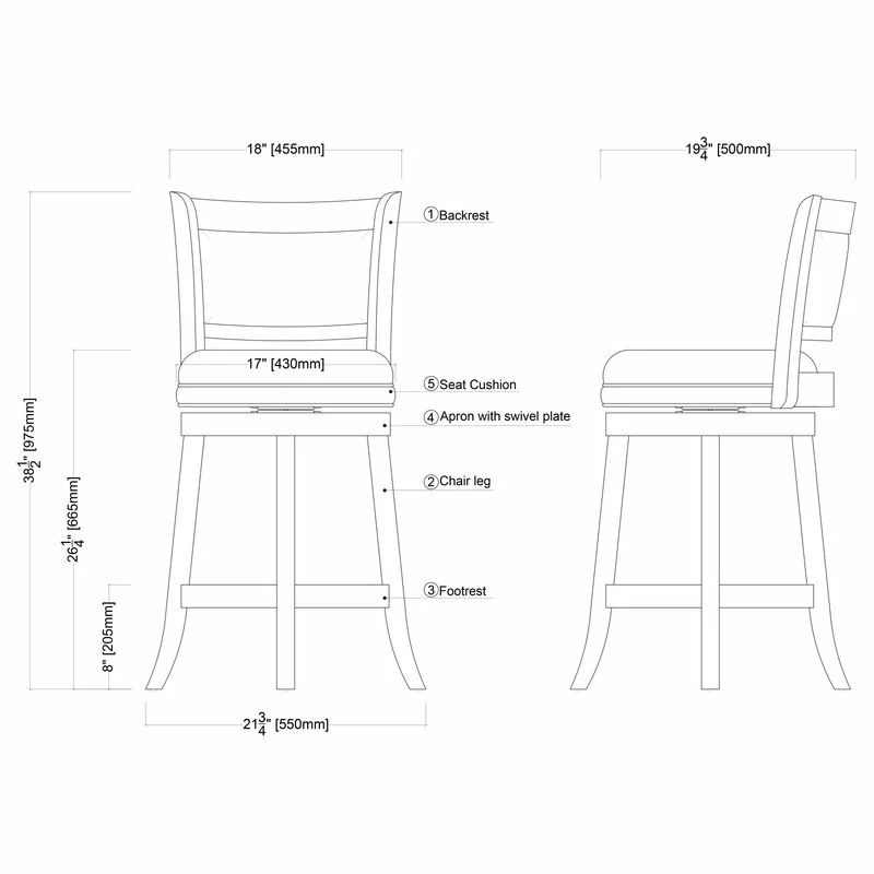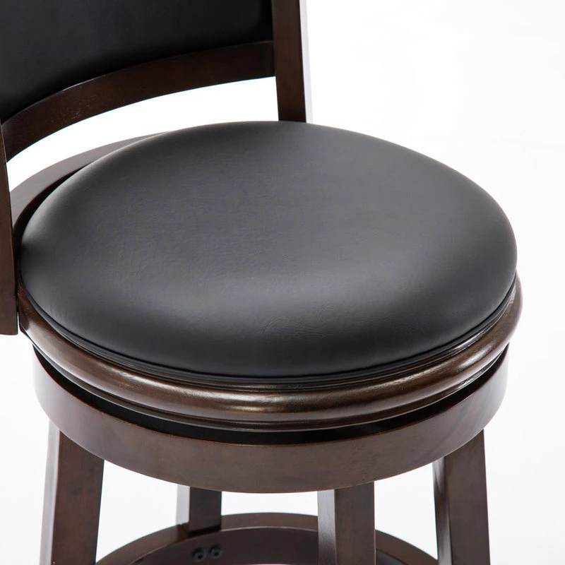 The Augusta Swivel Stool from Boraam Industries, Inc. boasts a solid hardwood footrest. Boasting a 360-degree swivel mechanism, this piece has been designed with your comfort in mind. This stool also features a high-density foam seat and backrest cushion upholstered in shiny black bonded leather. Exuding a warm, luxurious feel, thanks to its rich colors and sumptuous textures, this swivel stool from Boraam Industries, Inc. makes a sophisticated addition to any interior space.