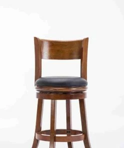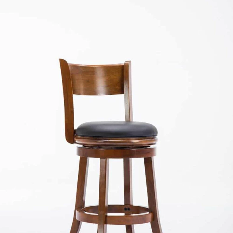 The Palmetto Swivel Stool from Boraam Industries, Inc. boasts a solid hardwood footrest. Boasting a 360-degree swivel mechanism, this piece has been designed with your comfort in mind. This stool also features a wooden backrest and a high-density foam seat cushion upholstered in shiny black bonded leather. Exuding a warm, luxurious feel, thanks to its rich colors and sumptuous textures, this swivel stool from Boraam Industries, Inc. makes a sophisticated addition to any interior space.