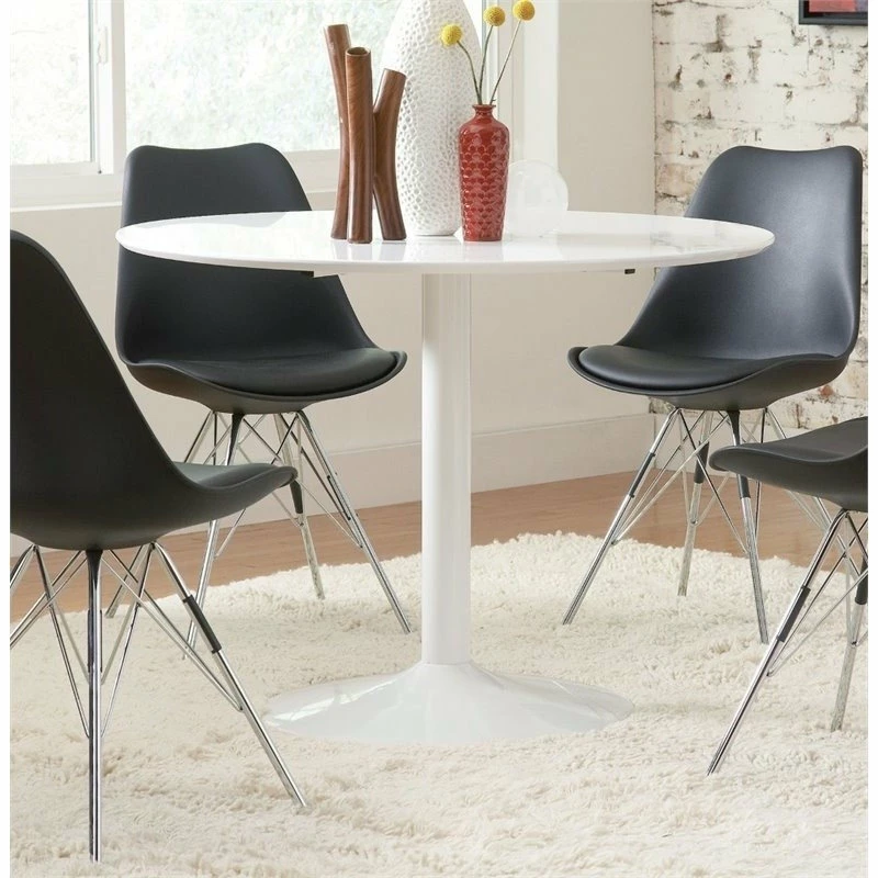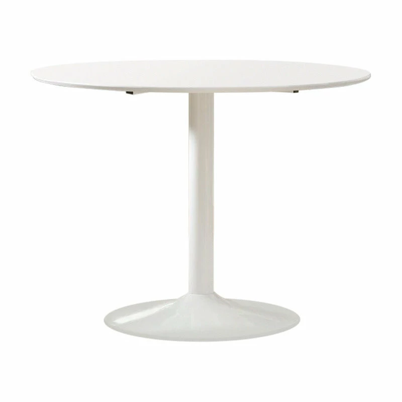 Retro styling meets contemporary ambience in this round dining table. It features a roomy round table top that’s perfect for a night of Texas hold ’em or morning coffee and doughnuts. Table is fashioned with a delightful tulip style table base. It features a powder-coated finish over metal for an enduring appeal. Contemporary style will look great in every home.