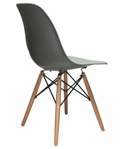 Nature Series Moss Gray DSW Molded Plastic Dining Side Chair Natural Beech Wood Eiffel Leg. A truly comfortable chair, the Harrison side chair demonstrates a modern yet retro look at the same time. The Harrison side chair takes this incredibly timeless design and makes it comfortable and durable, featuring a smooth and heavy duty polypropylene matte finish seat that contours to your body, combined with natural beech wood colored legs for a warm and minimalistic look. This chair is also one of the most versatile pieces, fitting in any dinner tables, home offices, play rooms, conference rooms, reception areas, or simply anywhere else when you need some extra seatings. Product Features