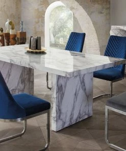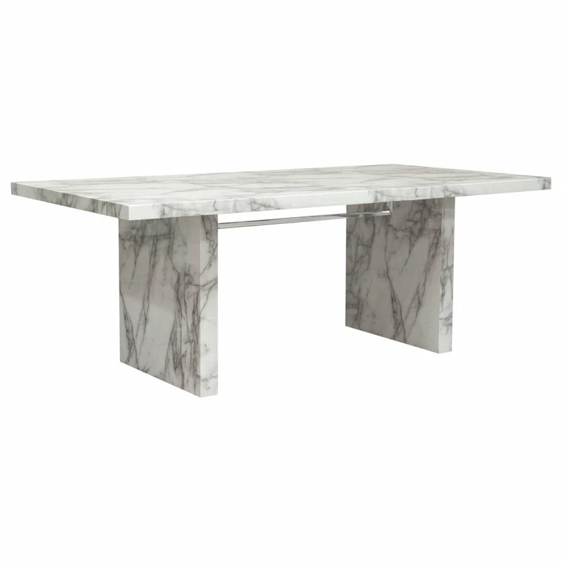 The Icon Dining Table is simplistic in design and sumptuous in detail. With its sleek, clean lines and marble finish, this 80 Inch by 40 Inch Dining Table will comfortably seat up to 6-10 guests. Invite the family, invite your friends, a great gathering place to create new memories and rekindle old ones.