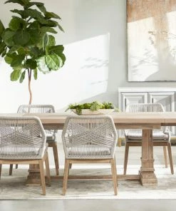 Whether your roots are coastal or inland, the Kai dining chair’s easy, breezy, flair brings crisp seaside vibes to whatever room it calls home. Its unique woven loom design and cozy removable cushion breathes refreshing life into its surroundings while its solid mahogany legs and aluminum frame provide a sturdy and durable base to carry you to comfort after a long day under the sun.