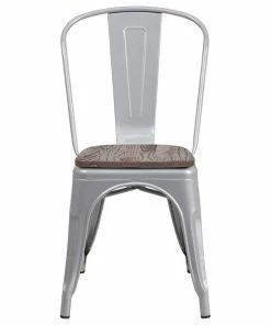Cheapest โจ Flash Furniture Silver Metal Stackable Chair With Wood Seat ๐