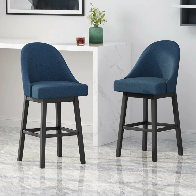 Add stunning style to your entertainment space with sleek design, delightful functionality, and plush comfort. Our bar stool set is an impressive addition to any home with its beautifully curved backrest and splayed legs. Featuring smooth upholstery and a convenient swivel feature, these bar stools will instantly upgrade your decor with a touch of modern. Not only are they the perfect bar height but they also feature a stylish, enclosed base that provides an extra boost comfort while you wine and dine.