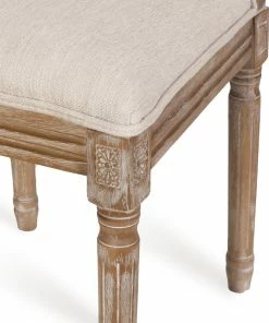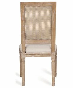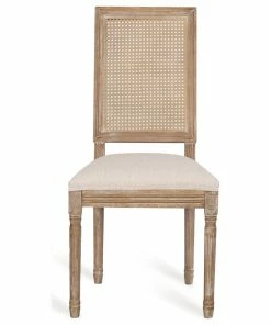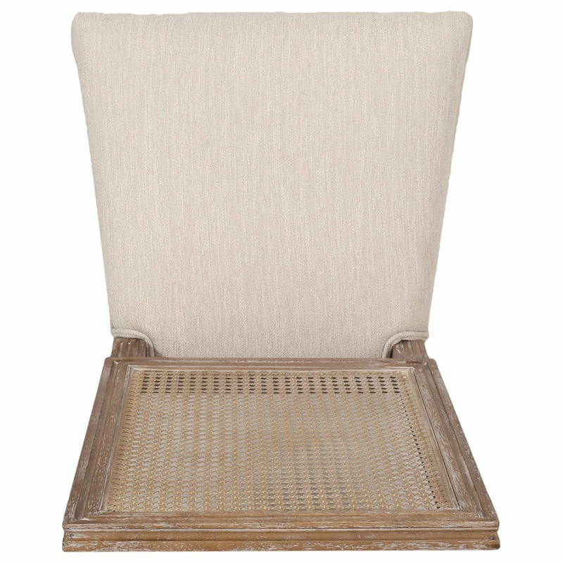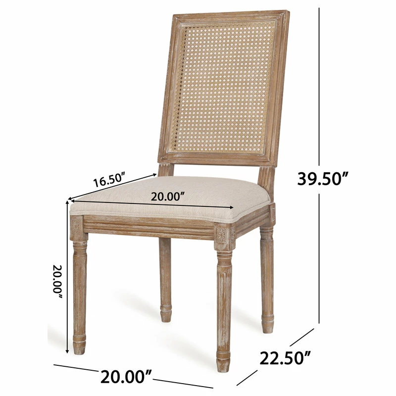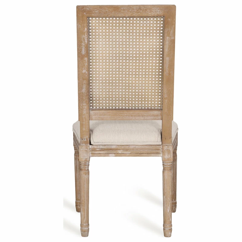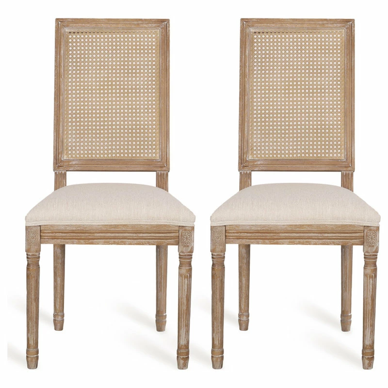 Finely crafted with sophistication, these chairs turn your dining area into a masterpiece. Drawing from French country inspiration, our set of two dining chairs feature an understated rectangular backrest made with cane, smooth upholstered seating, and fluted legs to offer your home something a little out of the ordinary while also remaining true to their elegant, old-fashioned roots. Their weathered frames showcase wonderfully contrasting lines and carved accents that encourage both casual meals with your family or extravagant dinner parties with your guests.