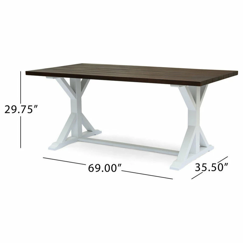 The dining table is the heart of the home; imbue your living space with warm, humble charm. This rustic yet contemporary selection offers the room a stylish dual-toned motif, its solid acacia wood frame sporting bright white legs with a smooth and easy-to-clean table top boasting a deep brown hue. Embodying a perfect blend of practical farmhouse functionality and clean, modern design, this update on a classic concept will open up your dining room or kitchen and set the perfect tone for breakfast, lunch, and dinner alike.
