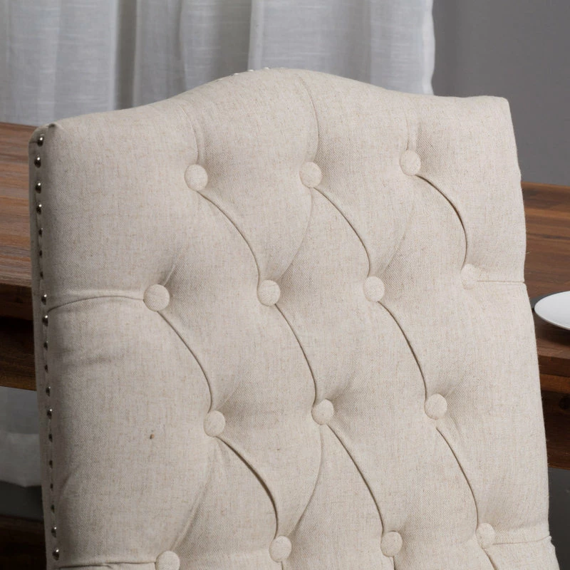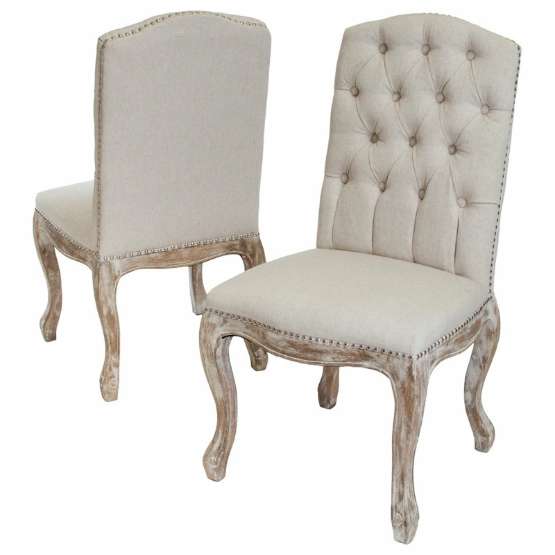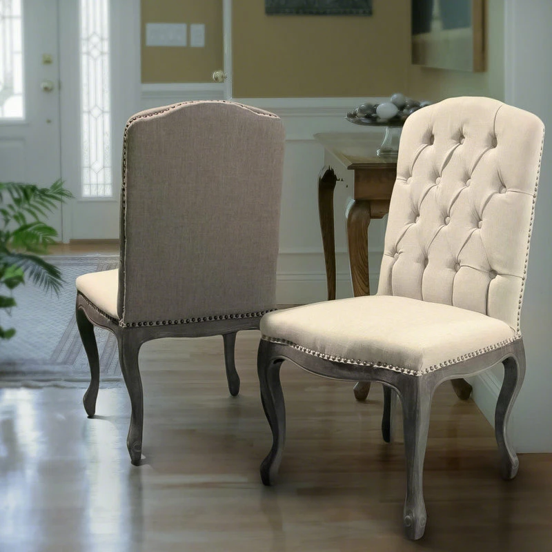 Quickly and easily fill your dining room space with these comfortable yet stylish dining chairs. Our dining chair set offers a sophisticated option for your meals with its luxurious button tufting and smooth upholstery, enhancing the chic atmosphere that surrounds them. Finished with weathered wood cabriole legs, this chair set not only offers a stunning contemporary design but also outstanding durability. Offering a breath of comfort and a touch of style, this dining chair makes it easy to host any dinner party or family get-together.