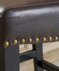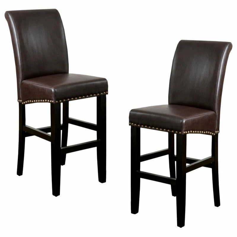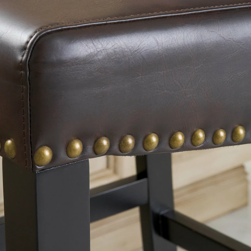 These bonded leather bar stools are the perfect transitional piece for your kitchen to your living room. Studded accents are featured along the edges of the seat to give this stool a contemporary look.