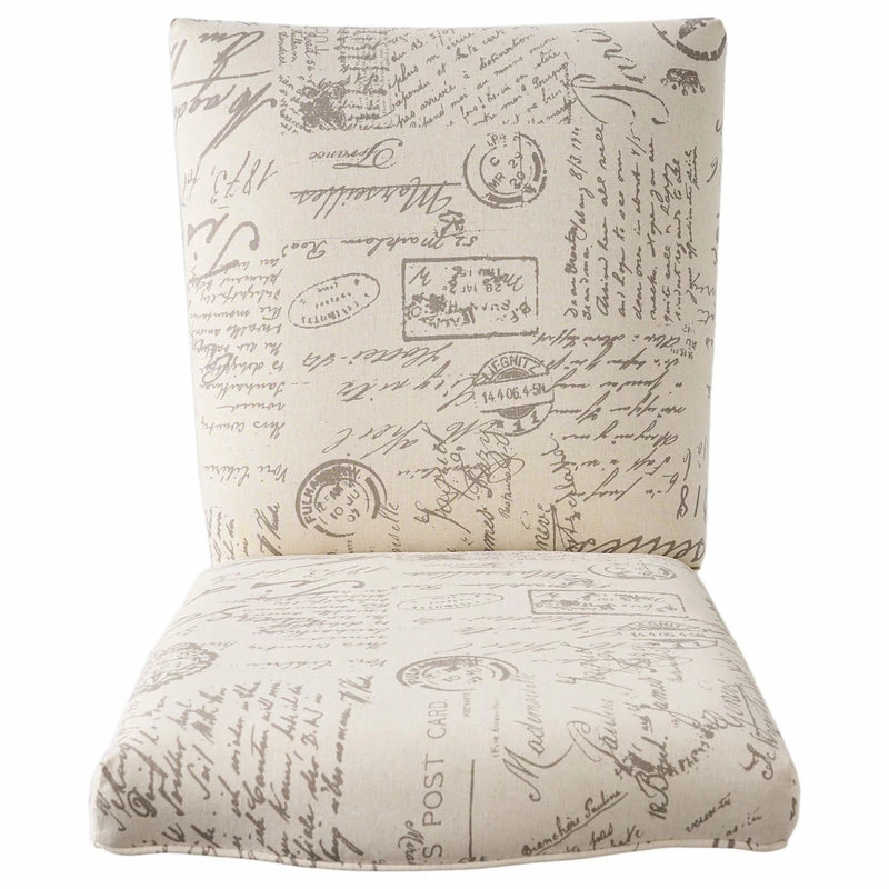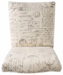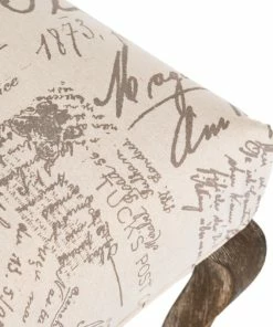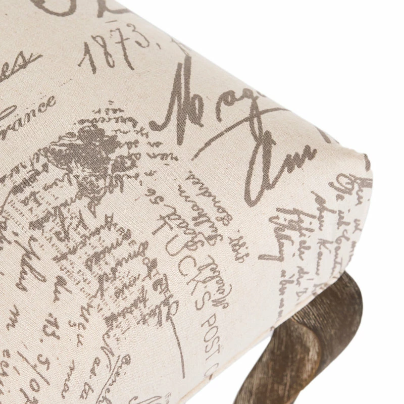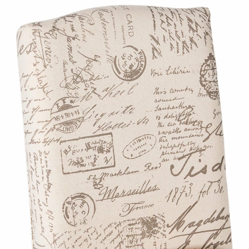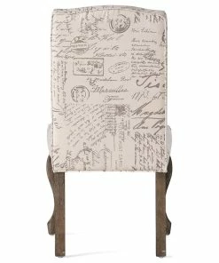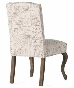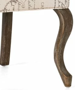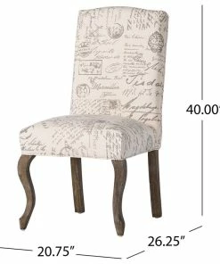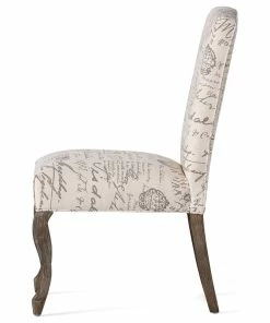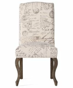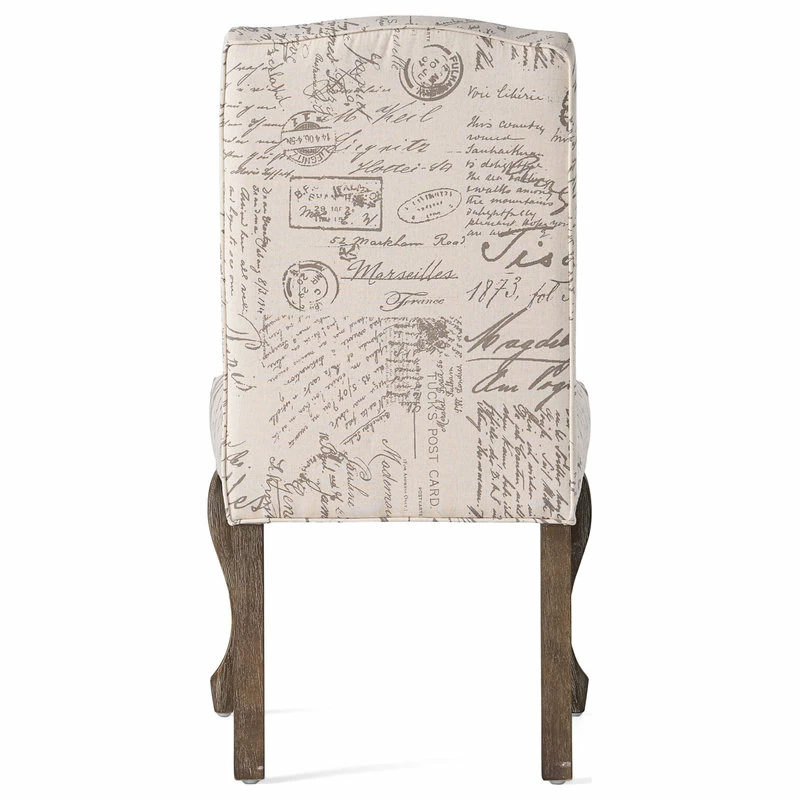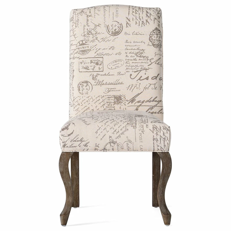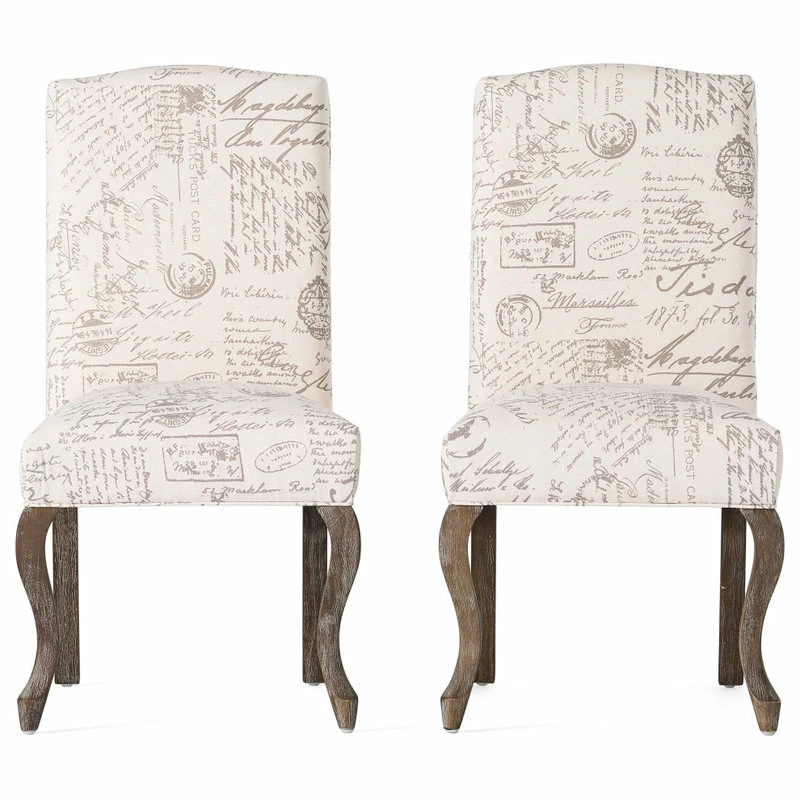 The Crown dining chairs offer an old-time elegance to your dining space. These chairs feature beige linen with French handwriting script pattern and carved espresso weathered oak legs. For a unique and classic look, place these in your dining room, or as accent pieces in your bedroom or living room.