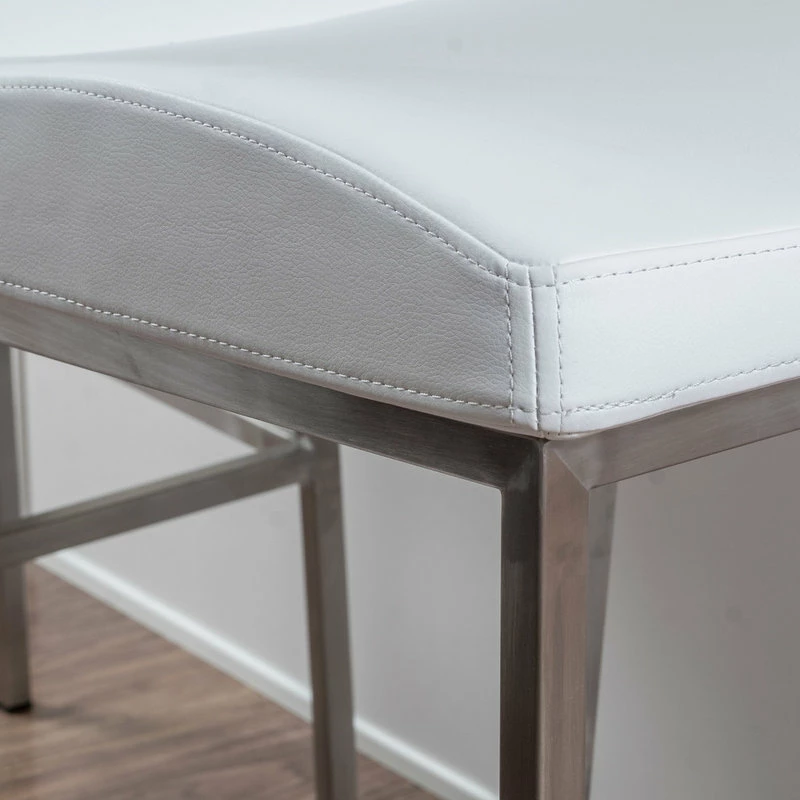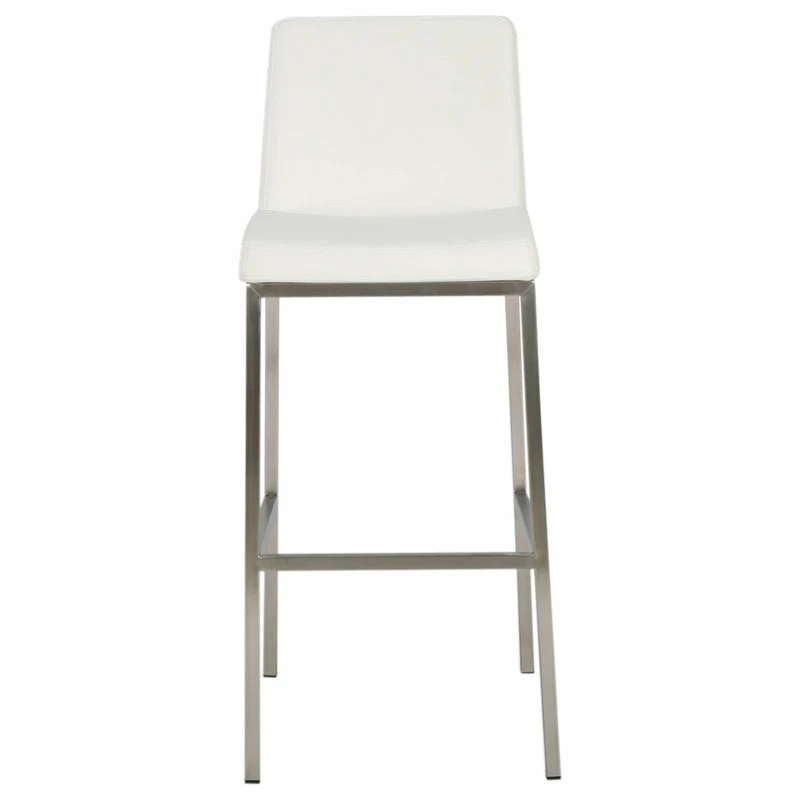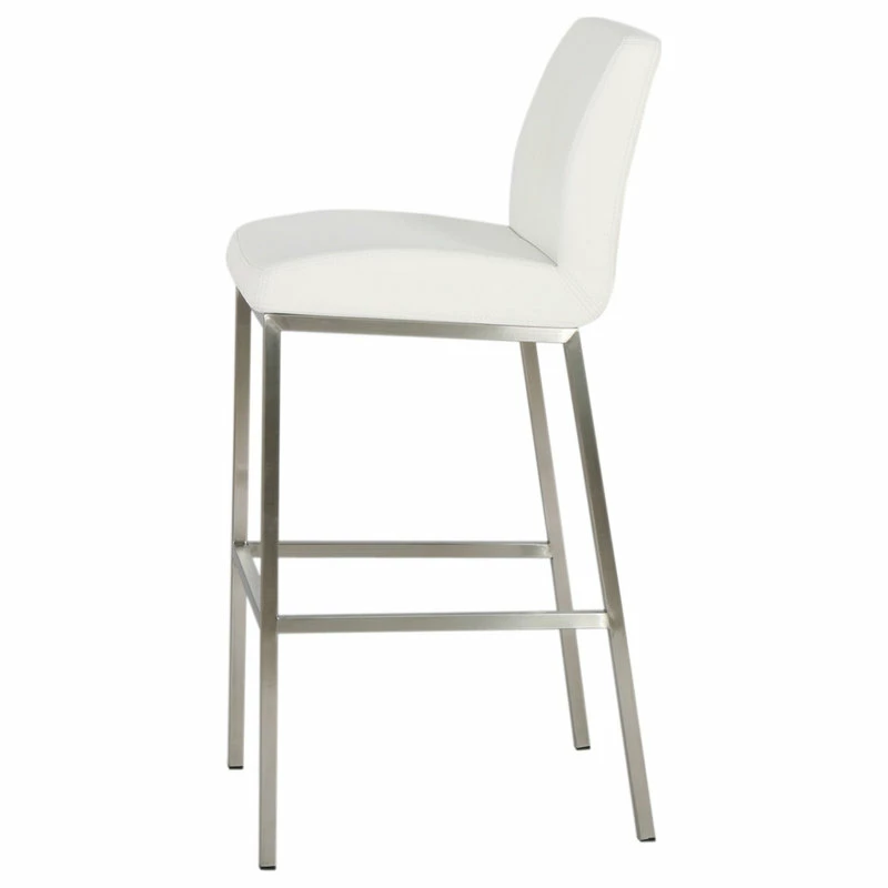 The October bonded leather barstool is a unique compliment to any decor. With its stainless steel frame, this barstool is sturdy and sleek, and complements any and all room styles.