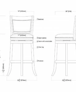 - Seat dimensions: 15.75″D x 17″W x 30″H
