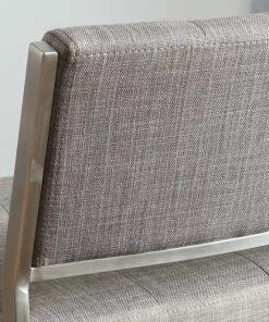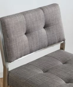 - Upholstered in fabric with stainless steel frame