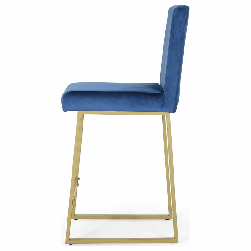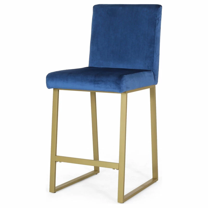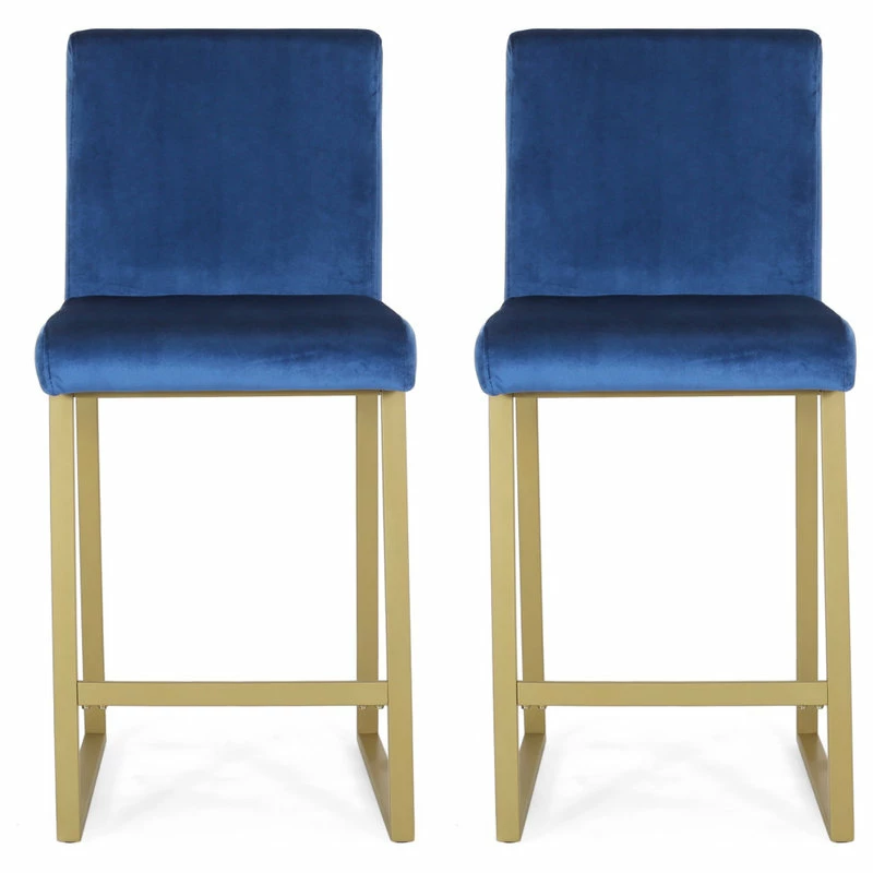 Create an ultra-chic, super-stylish bar, kitchen, or dining room with help from this gorgeous pair of barstools. Studded trim and smooth velvet upholstery contribute to the glamorous look of these incredible stools. These magnificent, modern barstools are supported by iron sled frames for durability and shine. Use them in your kitchen as a refined, opulent, and sophisticated touch, or pair them with a contemporary bar table to create an entertaining space that truly dazzles. Complement your modern space with these sophisticated barstools.