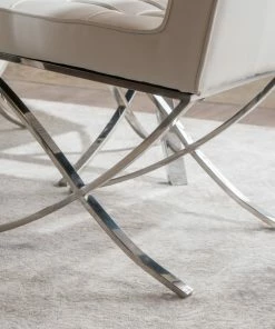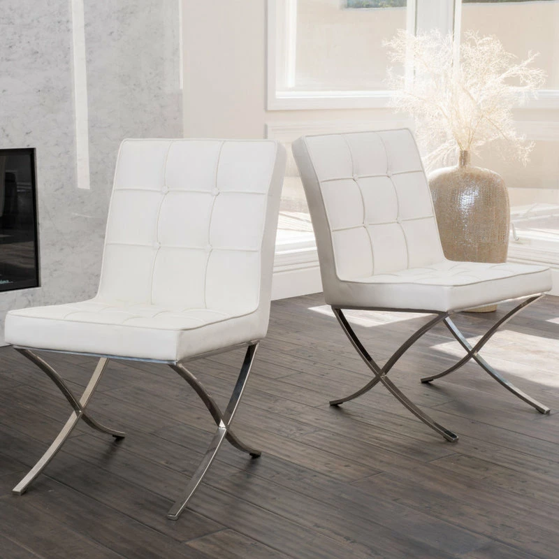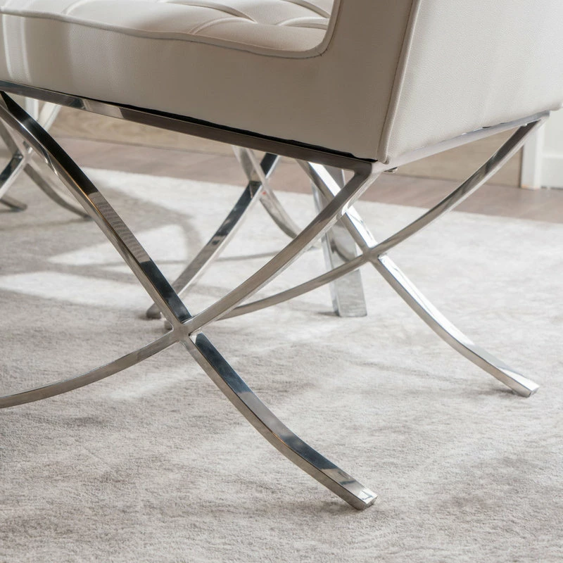 Entertaining your guests is made easy with a set of dining chairs that bring comfort and an air of refinement to your dining set. This set of chairs features gorgeous button-tufted seating and is complemented by smooth waffle stitching. Finished with chic piped edges along its stitching, each chair emphasizes modern design with its careful attention to detail. The dazzling silver X-shaped leg base adds the final touch to this set, bringing a polished looked to any interior space.