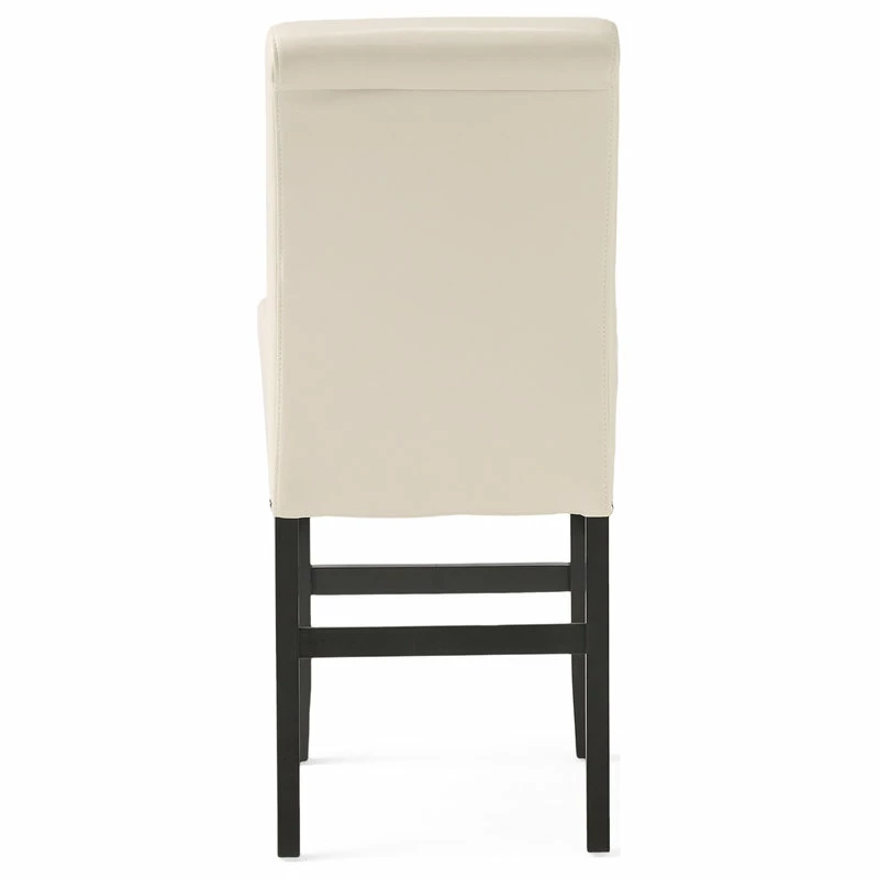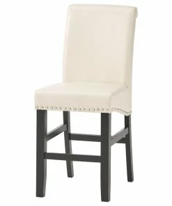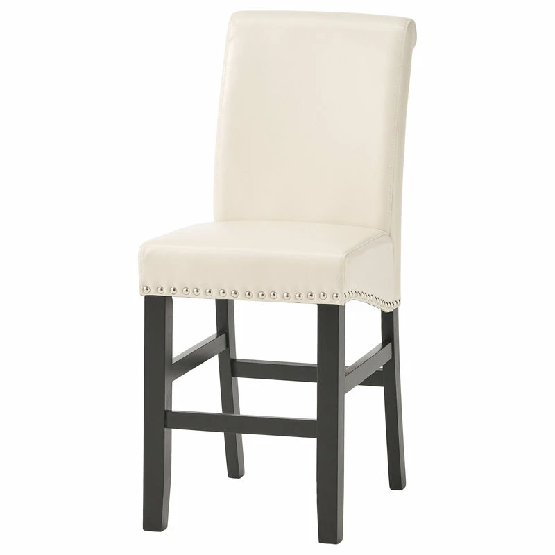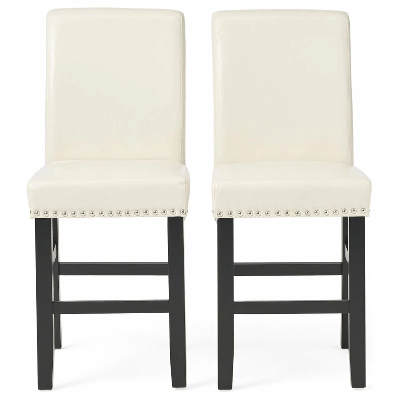 These bonded leather counter stools are the perfect transitional piece for your kitchen to your living room. Studded accents are featured along the edges of the seat and the black metal kickplate gives this stool a contemporary look.