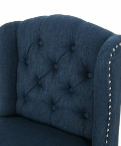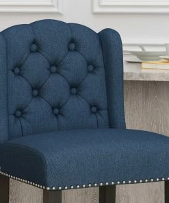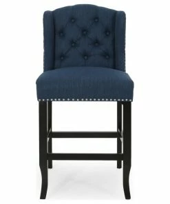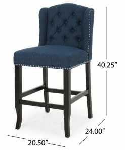 Offer your home the luxurious style it deserves with our set of gorgeous contemporary counter stools. Featuring a classic button-tufted backrest with diamond patterned stitching and a refined wingback design, our counter stool set brings an elegant touch to any interior space. The upholstered seating is finished with an exquisite nailhead trim that truly accentuates the superior style of your home. Finished with a solid rubberwood frame, this set of counter stools also provides sturdy durability to any kitchen counter or home bar.