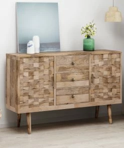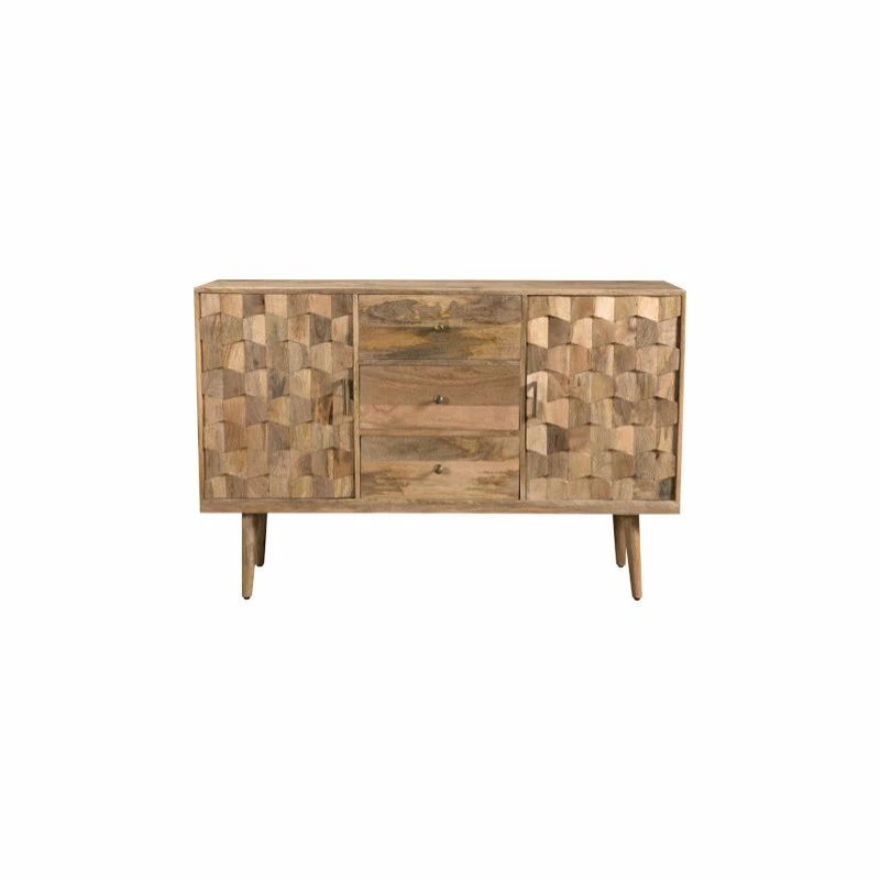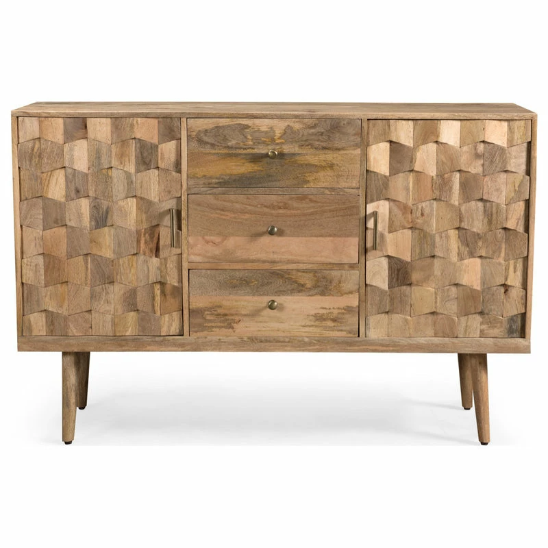 Arrange an outstanding centerpiece for your foyer or accent your living room with an accessory of unparalleled design with our gorgeous handcrafted cabinet. Created for both functionality and impeccable style, our mango wood cabinet effortlessly brings a chic mid-century modern atmosphere to any space with an impressive 3D tile weave design and sturdy wood frame. Completed with ample storage space, our impressive cabinet provides all sorts of options to remove clutter that will have all your guests in awe of your decor.