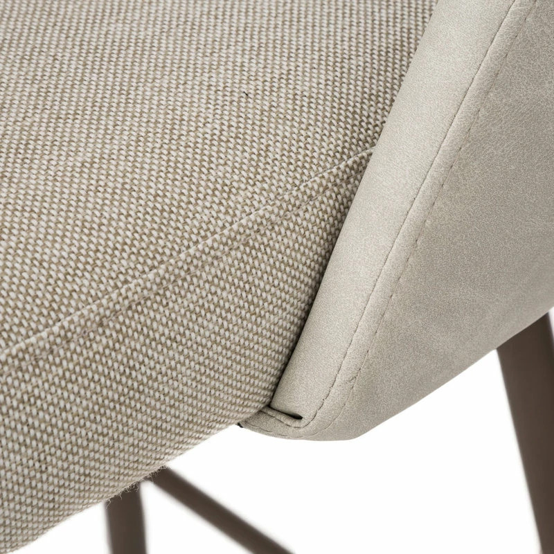 - Material and Color: Made of plywood frame, painting metal legs in matte brown, fabric seat and leatherette backrest.