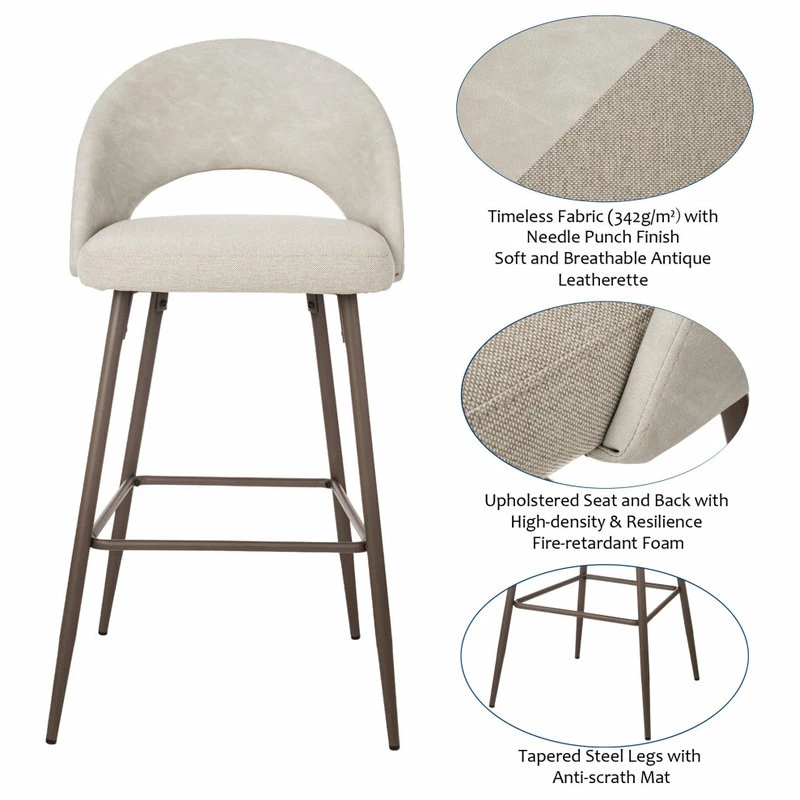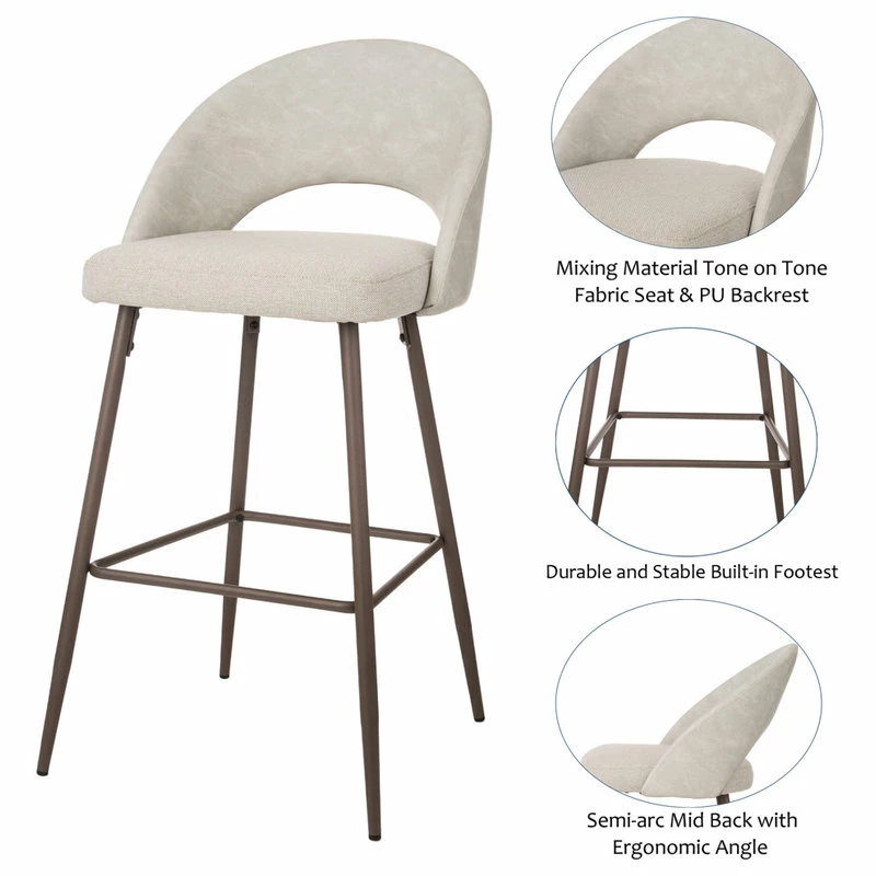 - Stylish and Elegant Design: Featureing mixing material tone on tone — the seat is made of timeless fabric with needle punch finish and the backrest is made of soft and breathable leatherette with antique finish, both Upholstered with high-density and resilience fire-retardant foam. Mid back, as well as tapered legs, all these special designs give a contemporary and modern touch to you home, and it’s an ideal seat or home decor accent in cafes, bars, restaurant, kitchen island, living rooms, clubhouse and any entertainment space.