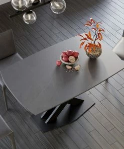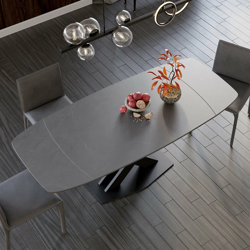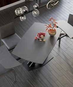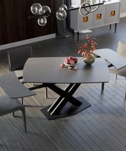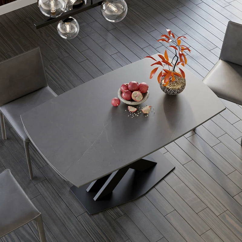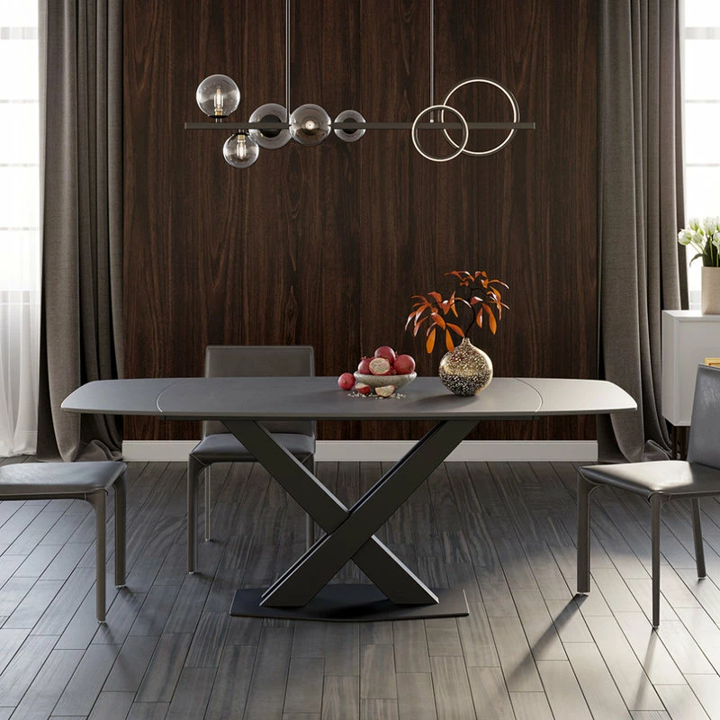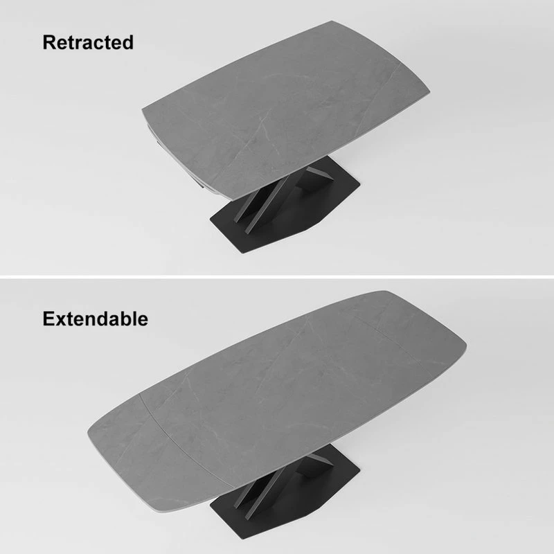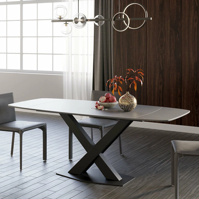 If you are looking for a beautiful and stylish option for your empty dining room, this chic dining table is the perfect pick. Boasting gorgeous rectangular silhouette and cool X base, it emits an upscale contemporary touch. The stone top is heat and scratch resistant, assuring daily use for years to come. And the edge is rounded to protect kids when they are playing. Supported by an X-shape pedestal base on a flat panel platform, it offers steady support and bearing. Moreover, the extendable and rotatable design easily meets your dining needs. Dress up any dining area with this nice piece!