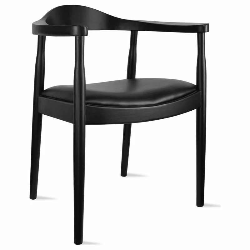 Outlet ๐ Homedotdot Real Oak Wood PU Leather Seat Wegner Kennedy With Arms Dining Chair, Black โจ