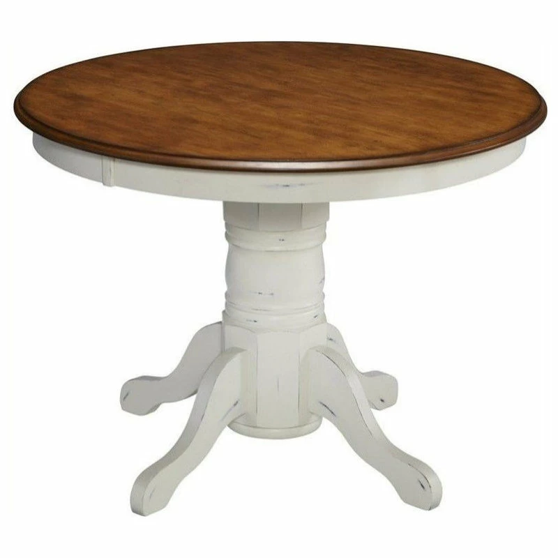 Enjoy a little flavor of mainland Europe with this Homestyles French Countryside Dining Table. The complementary oak finished top and Off White base feels right at home in any dining room. The combination of hardwood and engineered wood creates a centerpiece of your kitchen or dining room that will look great for years.