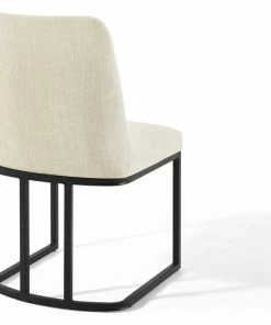 Striking lines and simple form blend to produce the Amplify Upholstered Fabric Sled Base Dining Chair. A boldly flowing matte black stainless steel sled base supports the premium seating experience produced by the soft and durable polyester fabric upholstery for a dining chair suitable for a variety of decor styles. Dense foam padding and gentle curves accent the glam deco elegance of the Amplify Dining Side Chair. Whether the Amplify Accent Chair is gracing your dining room, living room, lounge room, or office, visitors and guests will comment on this eye-catching addition. Chair Weight Capacity: 331 lbs. Assembly Required.