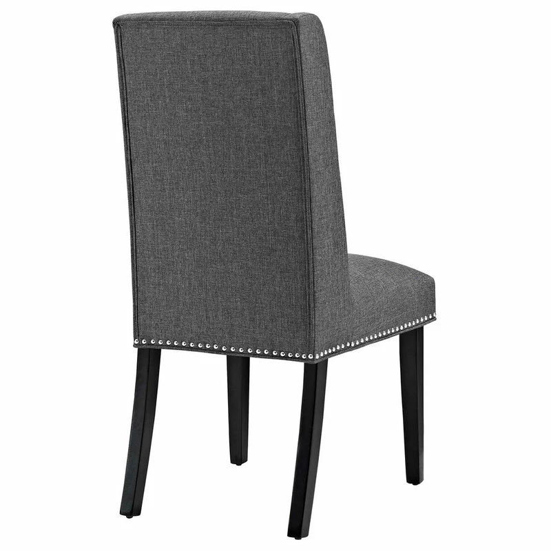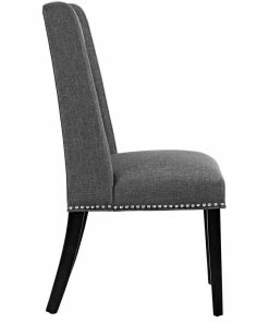 Explore the vast riches of a treasured heritage with the Baron Dining Chair. Designed to resonate elegance, Barons features a charming back and polished nailhead trimmed seat with a dash of grace and noble appeal. Complete with dense foam padding, fine fabric upholstery, solid wood frame and legs with non-marking foot glides, Baron is a stylish dining chair perfect for the modern home.