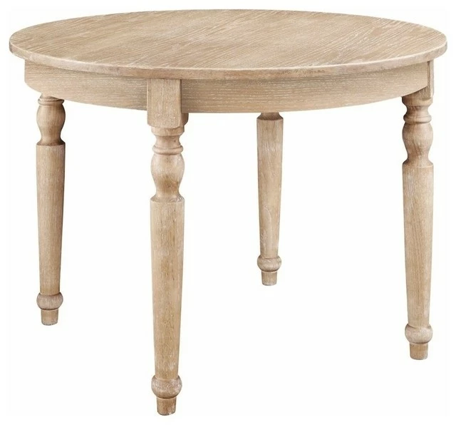 The Avalon Round Dining Table is a chic addition to your home. With its decorative turned legs and stylish rustic light natural brown finish, the table exudes French style. The spacious round top is perfect for gathering your family around.