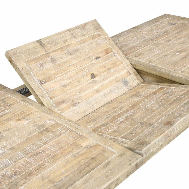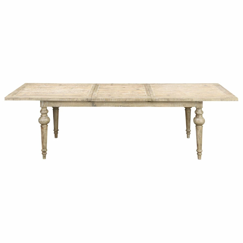 The West dining table combines the rustic nature of reclaimed woods with classic silhouettes, featuring self-storing butterfly extension leaf and turned legs
