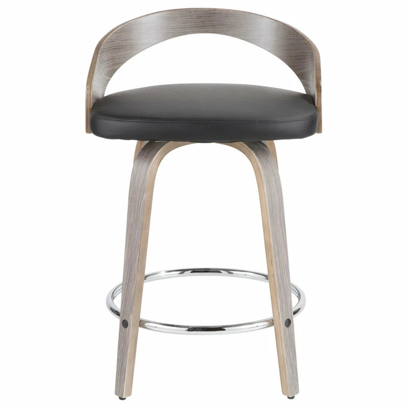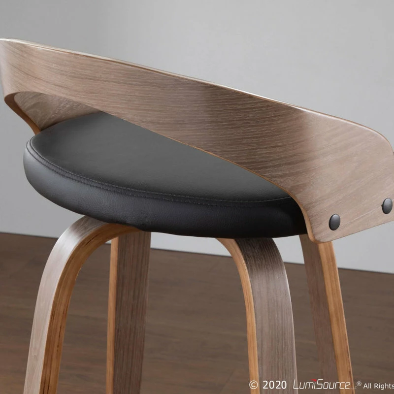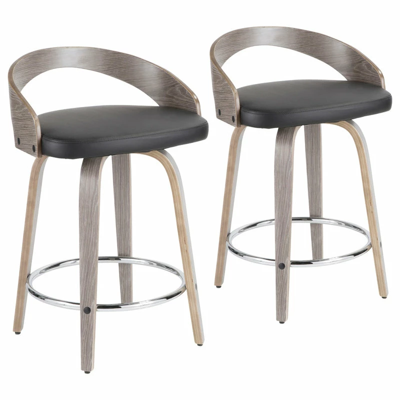 - Grotto Mid-Century Modern Counter Stool with Light Grey Wood and Black Faux Leather by LumiSource – Set of 2
