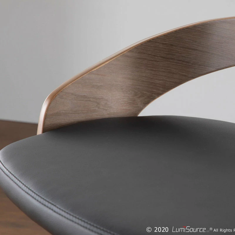 SKU: B24-GROTTOR LGY+BK2 Category: Bar Stools & Counter Stools Tags: 360 swivel, Black, Black counter stool, Black faux leather, Black upholstery, Chrome, Counter stool, Curved backrest, Cushioned, Faux leather counter stool, Faux leather upholstery, Fixed counter height, Fixed height, Fixed height counter stool, Fixed height seating, Footrest, Grey and black, Grotto, Lumisource, Open backrest, Pu leather, Round seat, Upholstered seat, Walnut, Wood