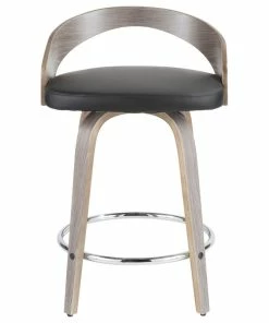 Best Pirce โ LumiSource Grotto Counter Stools With Swivels, Set Of 2, Light Gray Wood, Black, Pu, Chrome ๐