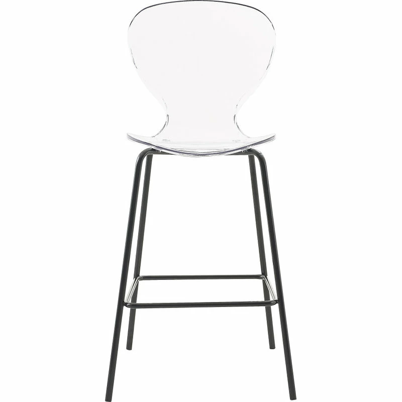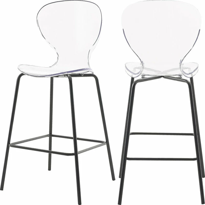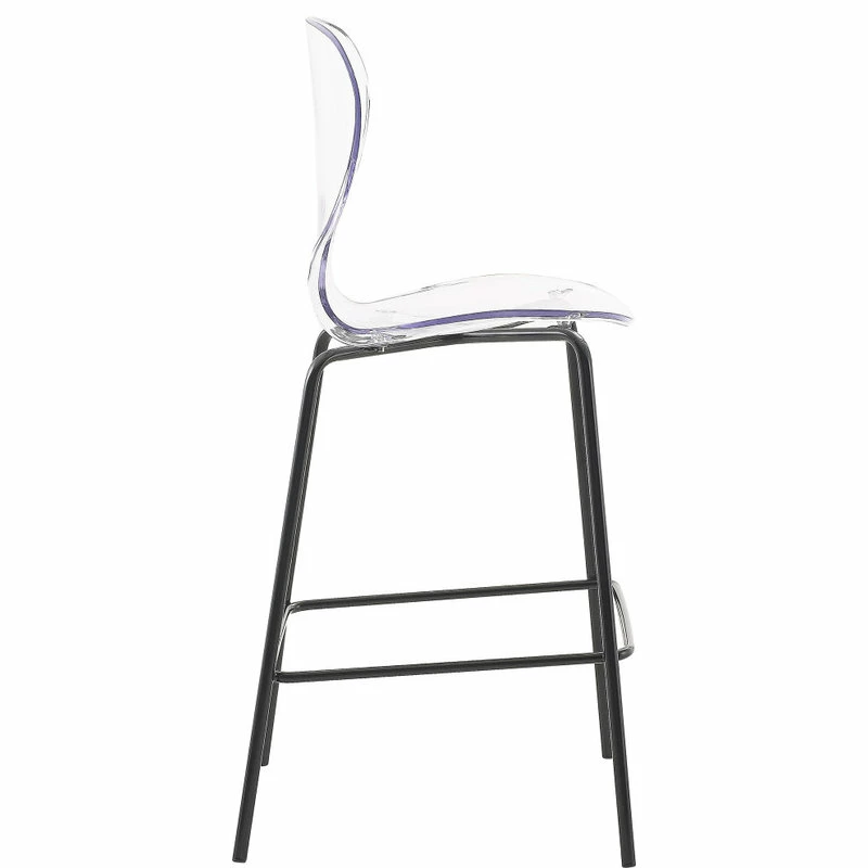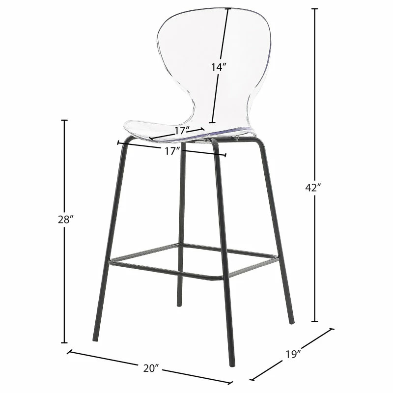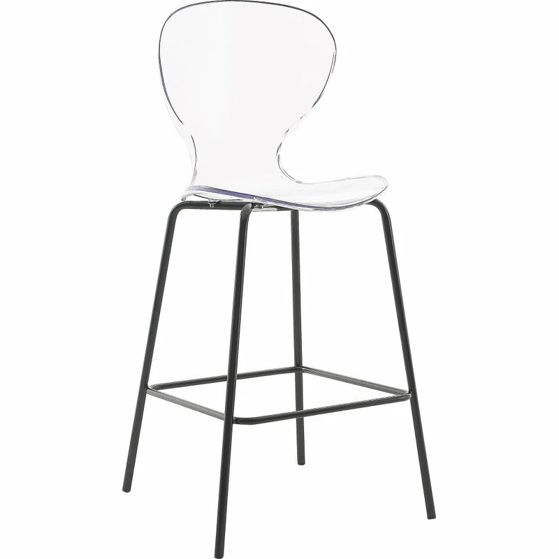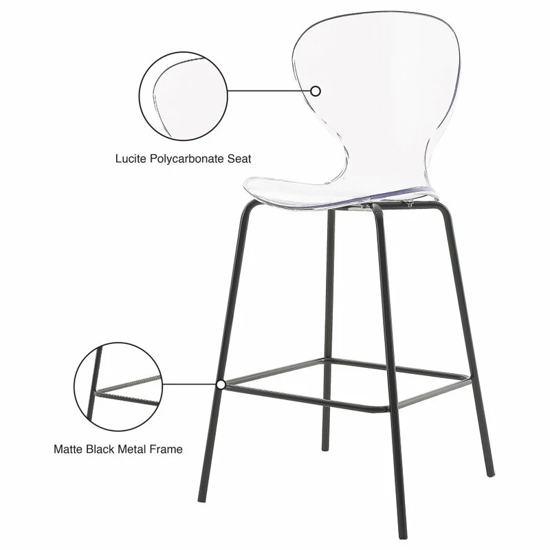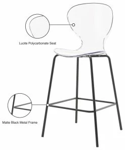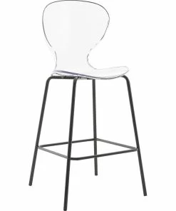 Infuse modernity into your kitchen counter or home bar with this Clarion stool. A translucent seat and back add a bold and contemporary look to your space while relying on the strength of Lucite polycarbonate to ensure sturdy strength and resilience. A classic metal base with a matte black finish contrasts nicely with the translucent top, giving your room a modern vibe that’s hard to ignore yet basic and simple at the same time. A foot rest on the bottom of this stool gives you a spot for resting your feet while you wait on your frosty beverage.